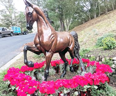 This monumental bronze equine sculpture commission being enjoyed by the client commemorates a superb show career for both client and her horse.. Such a large equine sculpture in fine art bronze will enhance your property.