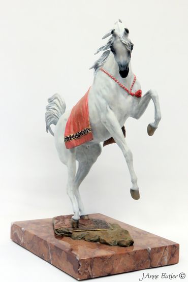 16" 41 cm high, is a tribute to the culture of the Middle East and the Arabian Horse which influenced the region so much. Like most J. Anne Butler bronze sculptures you can custom order in your choice of bronze patina colour or as a life size statue.